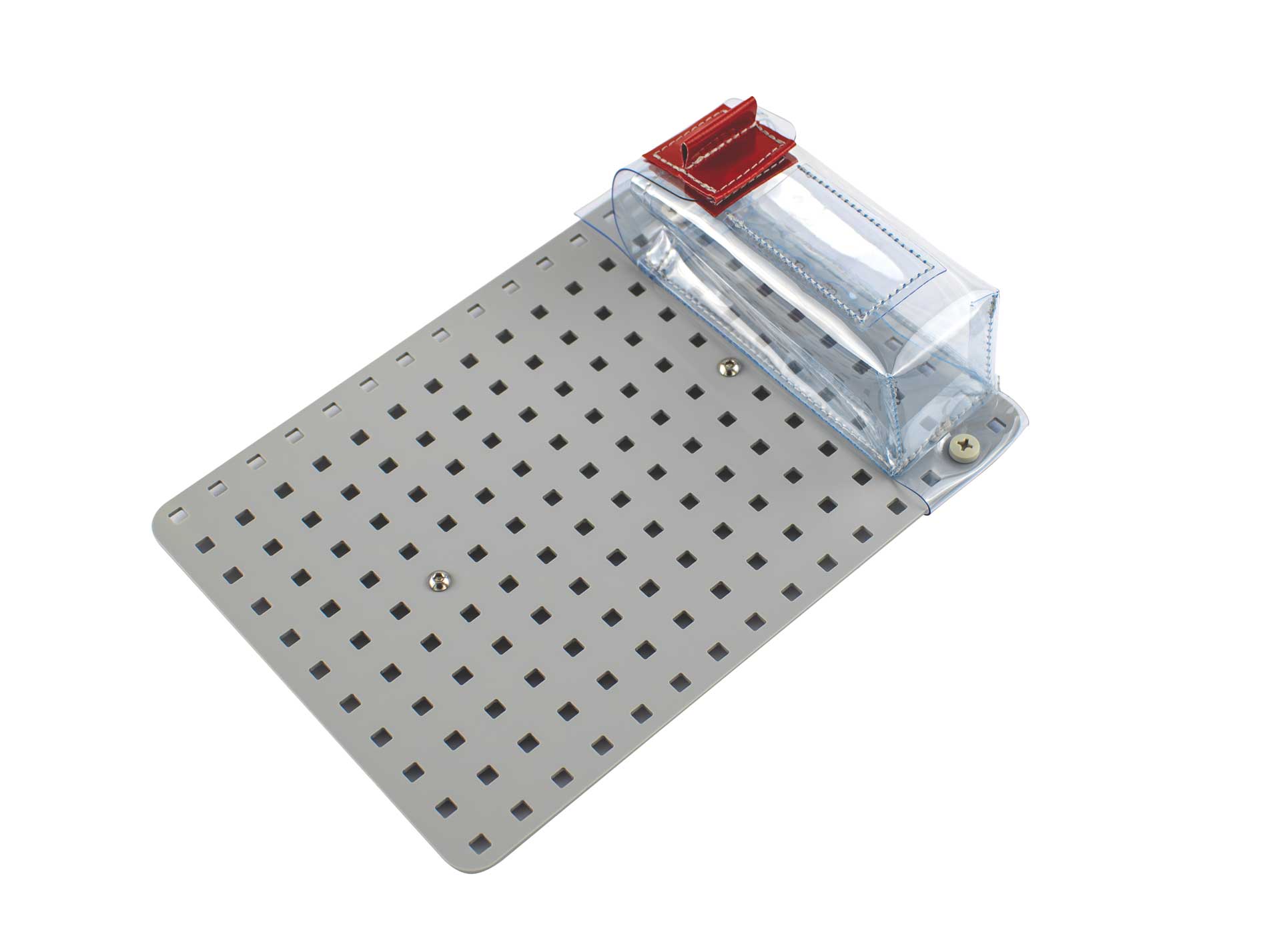 Die Folientasche wird durch zwei Buchschrauben fest mit der Systemplatte verbunden, sodass eine stabile und zuverlässige Befestigung gewährleistet ist. Mit den kompakten Abmessungen von 45 x 180 x 50 mm fügt sich die Tasche perfekt in das System ein und bleibt dabei handlich und platzsparend. Die STAVANGER® Folientasche für Kanülen ist eine ideale Ergänzung für die Systemplatte MM und bietet eine praktische Lösung für die sichere Aufbewahrung und den schnellen Zugriff auf Kanülen.