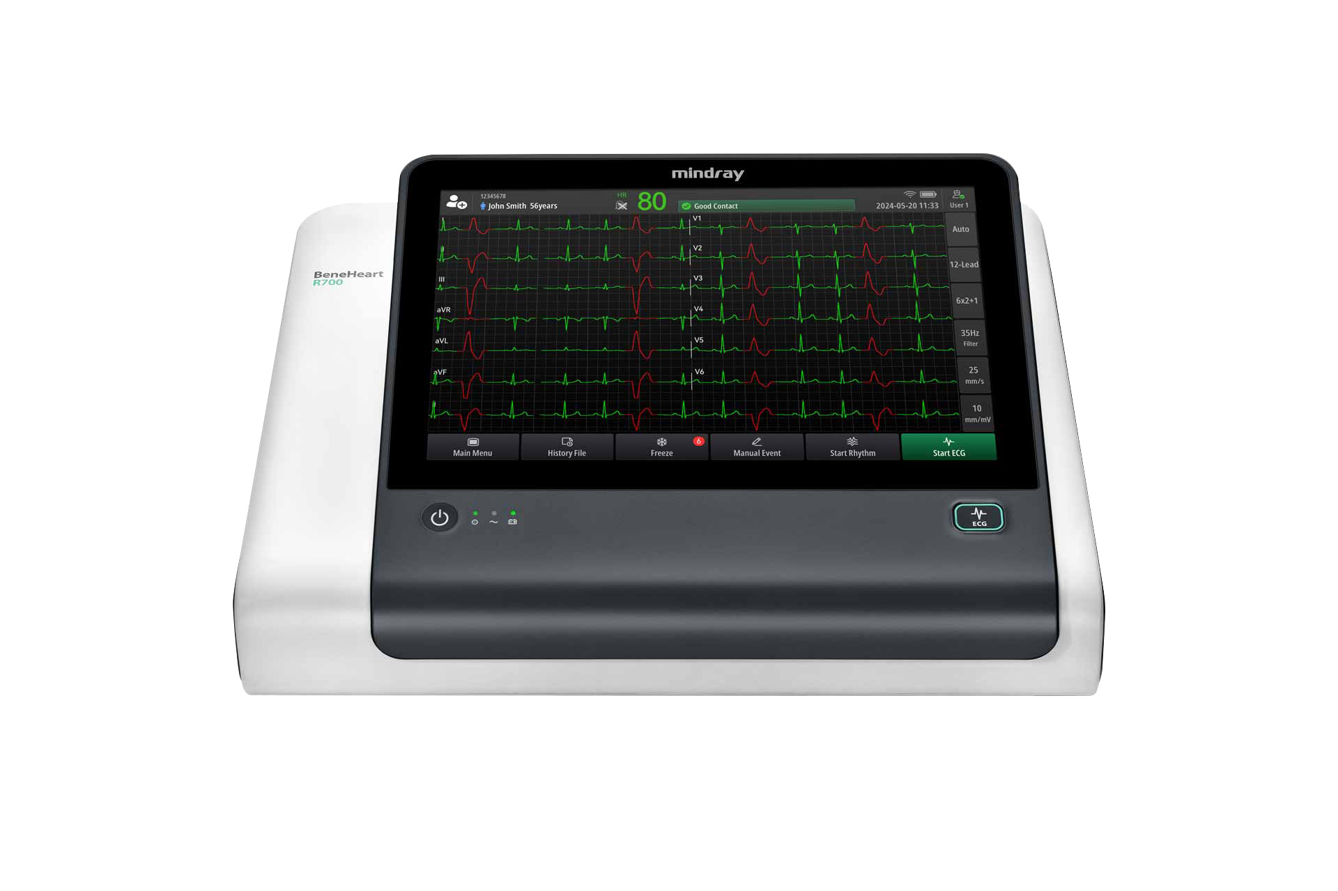 Das BeneHeart R700 (Advanced) ist ein hochmodernes, tragbares EKG-Gerät, das mit fortschrittlicher Technologie und Benutzerfreundlichkeit beeindruckt. Mit seinem 12,1-Zoll-Touchscreen ermöglicht es eine einfache, direkte Bedienung und schnelle Navigation durch die verschiedenen Funktionen. Durch die Integration eines Lithium-Ionen-Akkus mit einer Betriebszeit von bis zu 8 Stunden (ohne Druckfunktion) ist das Gerät auch für längere Einsätze hervorragend geeignet und gewährleistet eine hohe Flexibilität bei der Patientenuntersuchung.