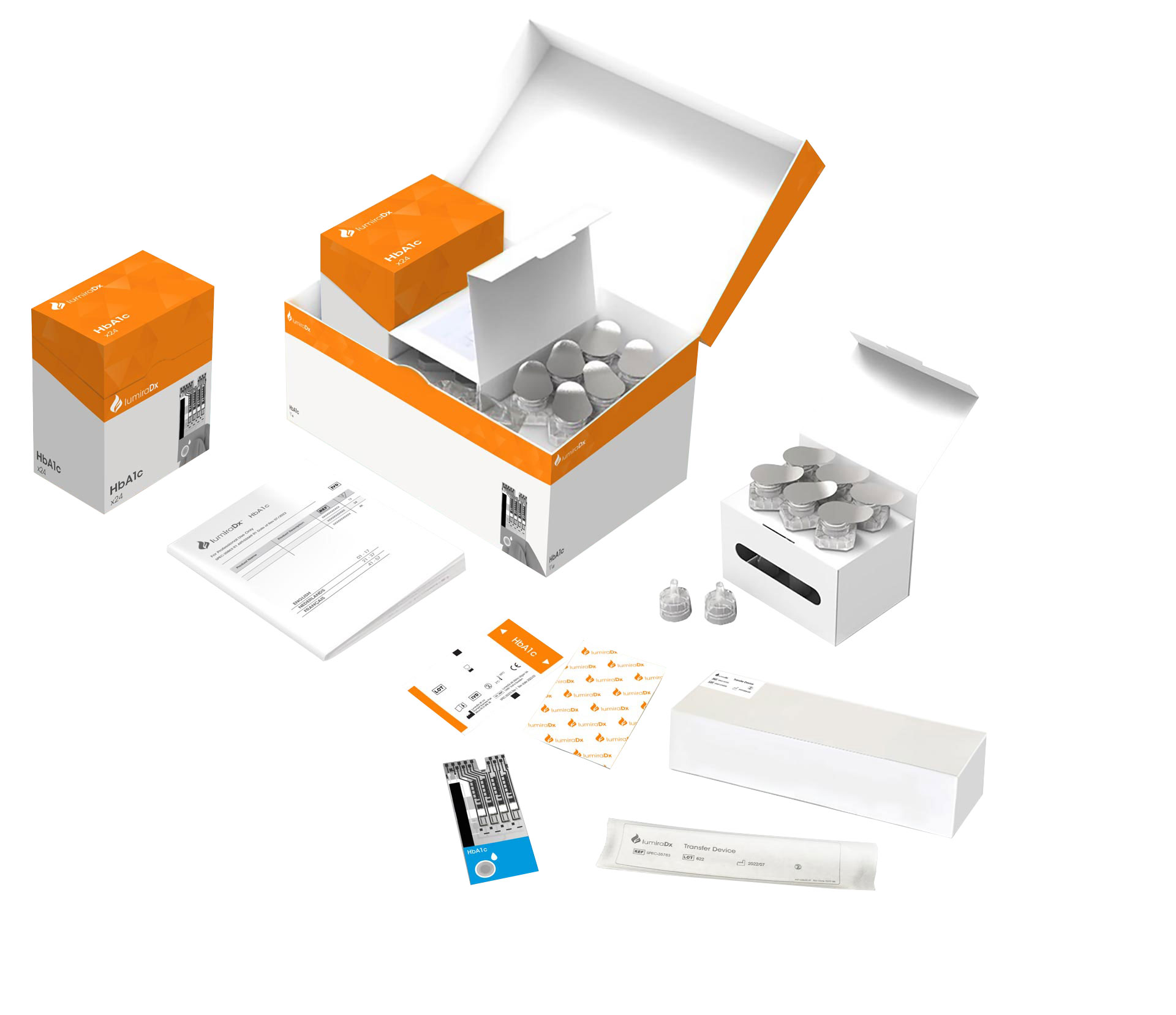 Der LumiraDx HbA1c Test ist ein benutzerfreundlicher, schneller Mikrofluidik-Immunoassay, der für die präzise Quantifizierung des HbA1c-Werts aus Vollblutproben entwickelt wurde. Der Test kann sowohl mit Kapillarblut aus der Fingerbeere als auch mit venösem Blut durchgeführt werden und liefert in Verbindung mit der LumiraDx Plattform zuverlässige Ergebnisse innerhalb von weniger als 5 Minuten am Point-of-Care.