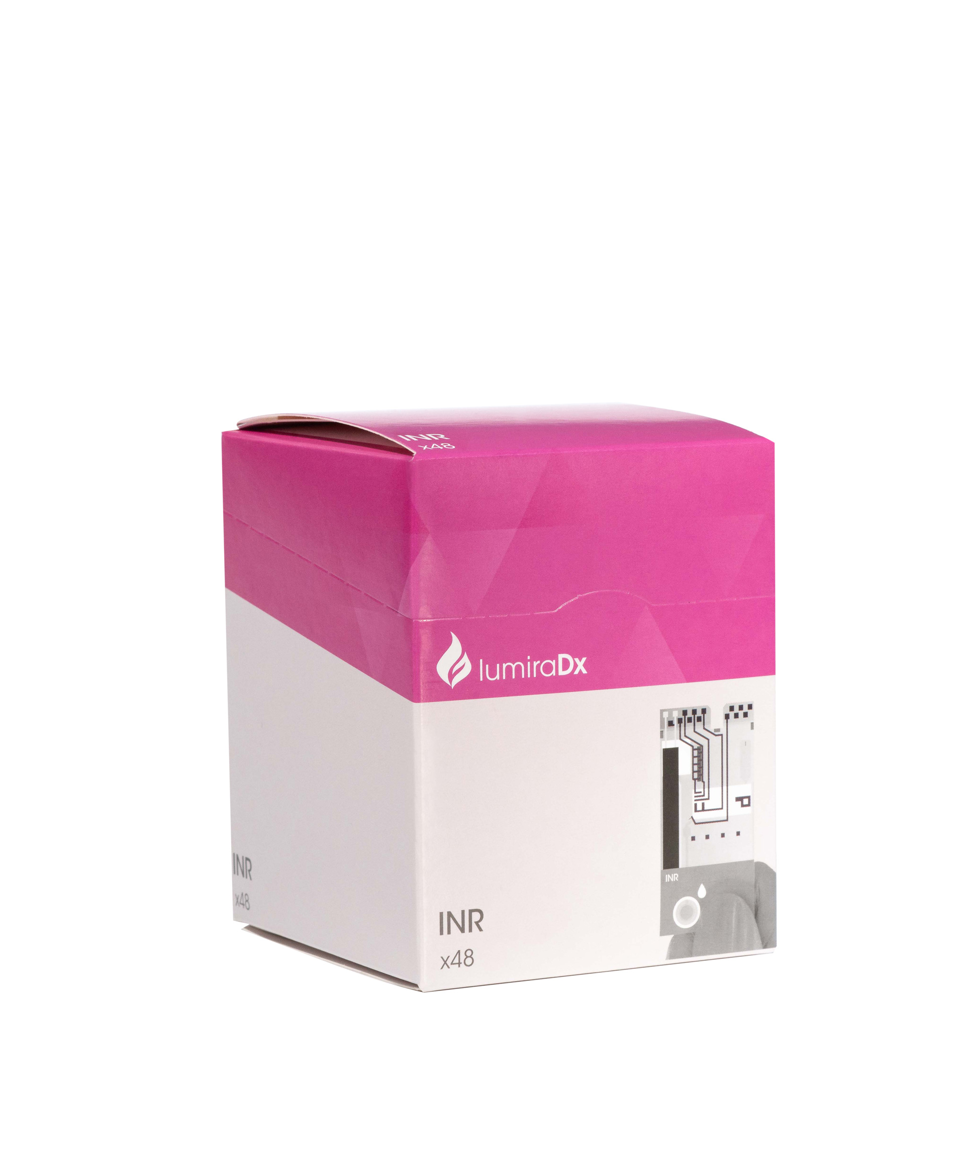 The LumiraDx INR test strips offer a precise method for determining the INR value in patients on anticoagulation therapy. The test reagents activate the coagulation cascade and the INR is calculated based on the measured prothrombin time (PT). The fluorescence emitted during the test is recorded and the time to reach a threshold is measured.