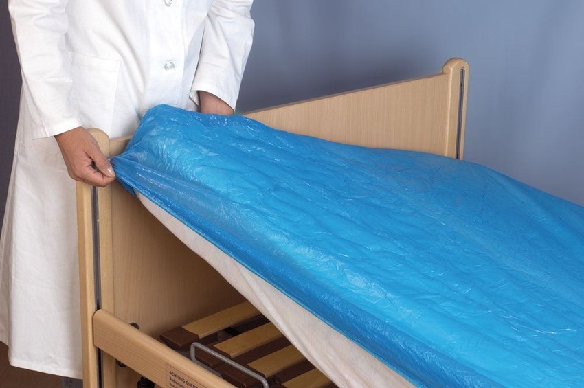 CPE mattress covers from WIROS Wilfried Rosbach GmbH is a protective mattress cover made of blue PE film (polyethylene) with an elastic band all around for a perfect hold. The protective covers ensure that the mattresses are protected against wetness, dirt and moisture in a hygienic way. Even blood and urine do not penetrate the mattress protector. The CPE mattress cover is flexible and can be used for babies as well as for incontinence or as a carrying sheet. The latex-free mattress protector is also an optimal solution for a hygienic and clean sleeping environment when travelling. The specially developed protective covers are hard-wearing, durable, stable and lightweight. CPE mattress covers from WIROS Wilfried Rosbach GmbH are latex-free and can be stretched over the desired lying surface like an ordinary bed sheet.