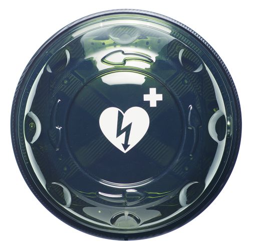 • Transparenter Deckel, 100% recyceltes Polycarbonat, 5 mm dick, UV-Schutz, AED-Logo