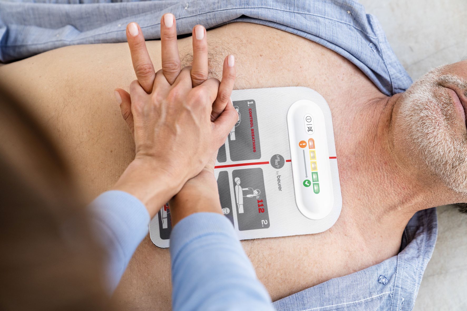 Das LifePad® RH 112 ist der perfekte Helfer für den Ernstfall. Die Reanimationshilfe bietet visuelles Feedback durch farbige LEDs, die den optimalen Kompressionsdruck anzeigen, und ein akustisches Signal, das die richtige Kompressionsfrequenz von 100 Schlägen/Minute vorgibt. Die einfache Positionierung wird durch klare Anleitung und Markierungen direkt auf dem Pad unterstützt. Dank seiner kompakten Größe und des flexiblen Materials ist es portabel und leicht zu verstauen. Mit einer Auflagefläche für die Hände, die bei der korrekten Positionierung hilft, passt sich das LifePad® der Körperform an. Es kann in Kombination mit einem Defibrillator verwendet werden, wobei der Ton abschaltbar ist. Im Lieferumfang ist eine CR2032 Batterie enthalten. Mit Abmessungen von 210 x 160 x 3 mm und einem Gewicht von etwa 130 g ist es handlich und praktisch.