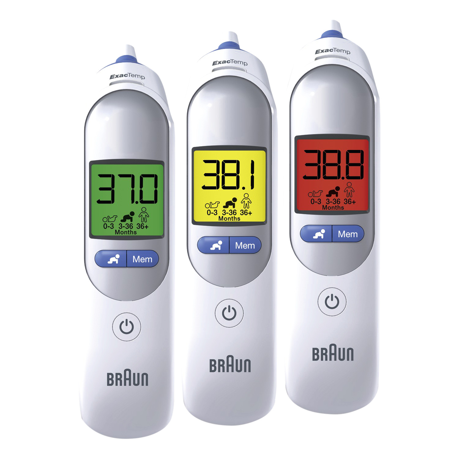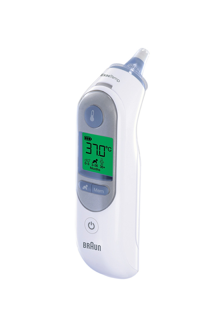 Mit seiner patentierten vorgewärmten Messspitze setzt das Braun ThermoScan®-Ohrthermometer Maßstäbe in Sachen Genauigkeit. Die Messspitze des ThermoScan® wird vor dem Verwenden erwärmt, um professionelle Genauigkeit zu erreichen. Außerdem bestätigt die ExacTemp® Positionierungshilfe die korrekte Position und die Genauigkeit der Messung mit Licht und Piepton.