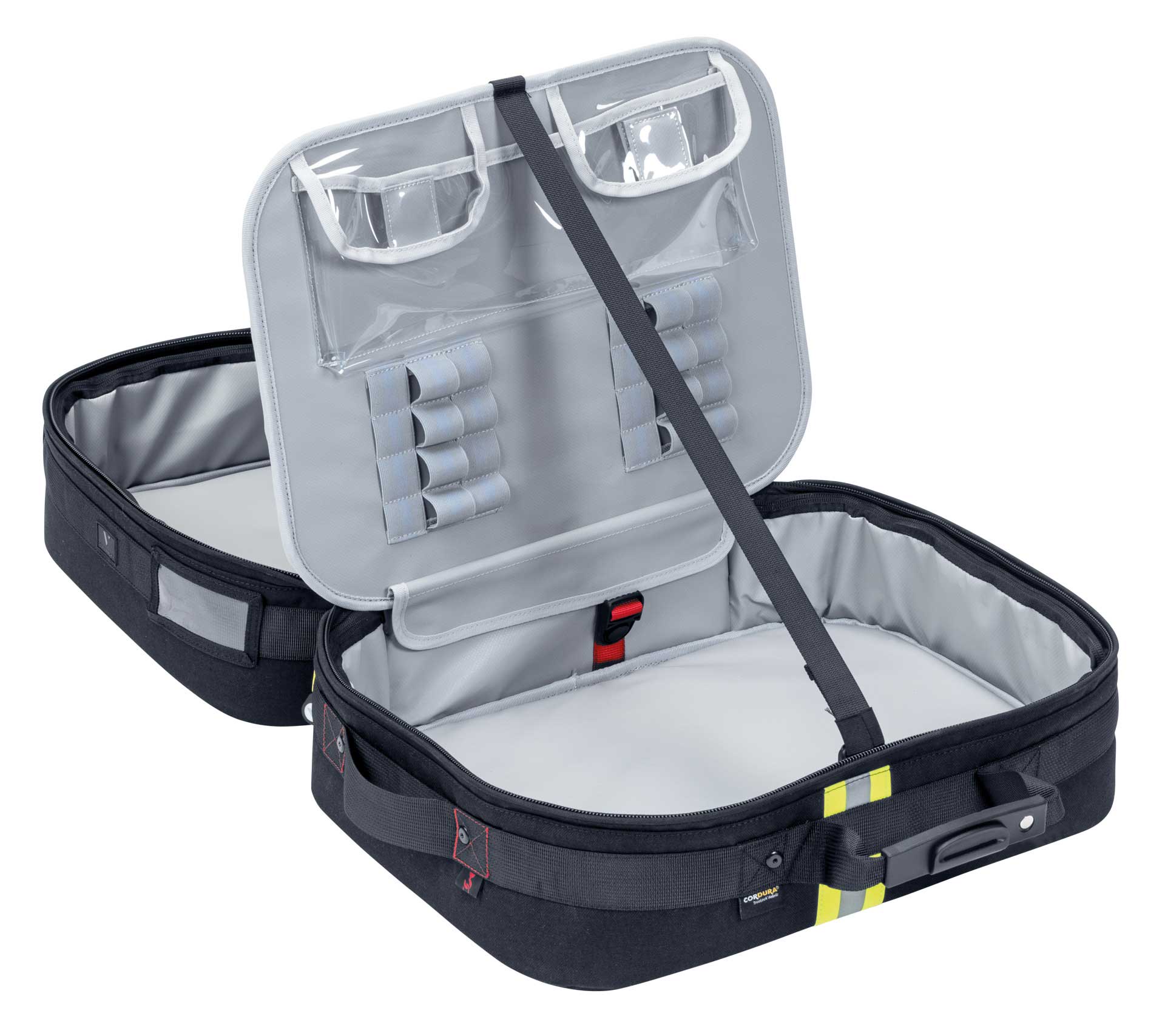 In diesem gefüllten Notfallrucksack sind 6 Containermodule für die Unterbringung der Ausstattung im Lieferumfang enthalten. Die oberseitige Öffnung der Container- und Systemmodule ermöglichen eine Materialentnahme aus dem Modul heraus.